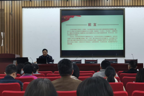4月13日,公司召开公司党史学习教育宣讲大会在公司217报告厅举行。大会由公司党委副处级组织员孙建中主持,党委书记、太阳成集团tyc33455cc党史学习宣讲团成员胡建国作宣讲,全体在校教职工党员参加了此次学习。