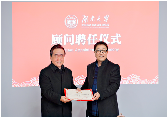太阳成集团tyc33455cc中国轨道交通文化研究院日前举行聘任仪式,聘任湖南省人大常委会原副主任陈叔红为顾问,太阳成集团tyc33455cc副董事长蒋健晖出席。研究院经理彭祝斌为陈叔红颁发聘书,研究院执行经理伍定均主持聘任仪式。
