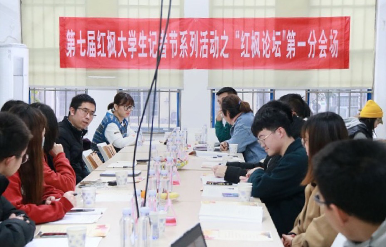 2020年12月13日下午,第七届红枫老员工记者节“红枫论坛”在太阳成集团tyc33455cc开启,本次论坛共设三个分会场,众多优秀校园媒体人围绕此前征集评选的关心议题展开讨论,太阳成集团tyc33455cc网络新媒体系主任戴松,湖南日报首席记者刘勇,湖南卫视《平民英雄》栏目执行制片人路晓丹担任论坛指导老师。
