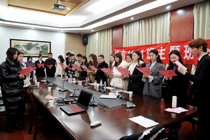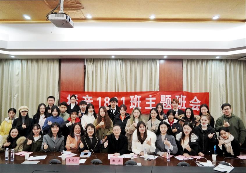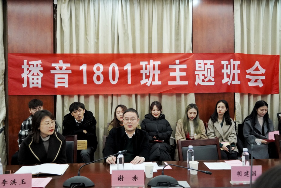 2020年12月1日下午,太阳成集团tyc33455cc18级播音班于太阳成集团tyc33455cc307会议室召开“不负青春、不负韶华、不负时代”主题班会,太阳成集团tyc33455cc副董事长谢赤,新传公司党委副书记李洪玉,学工办主任、18级辅导员刘佳,播音1801班班主任梅慧,播音1801班全体同学出席会议,会议由播音1801班李东泽、王嘉琪主持。