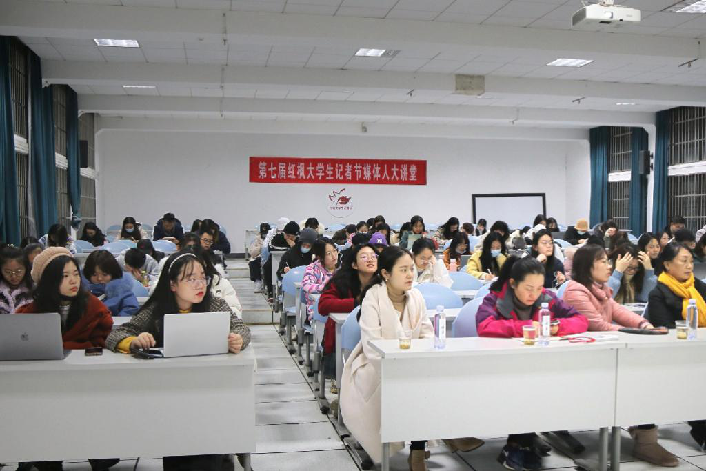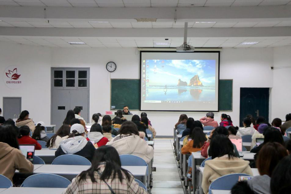 新传公司党委副书记、纪委书记李洪玉,院学工办、实践教学部、新闻系、新媒体系的教师代表,以及各年级员工代表聆听了本次讲座。
