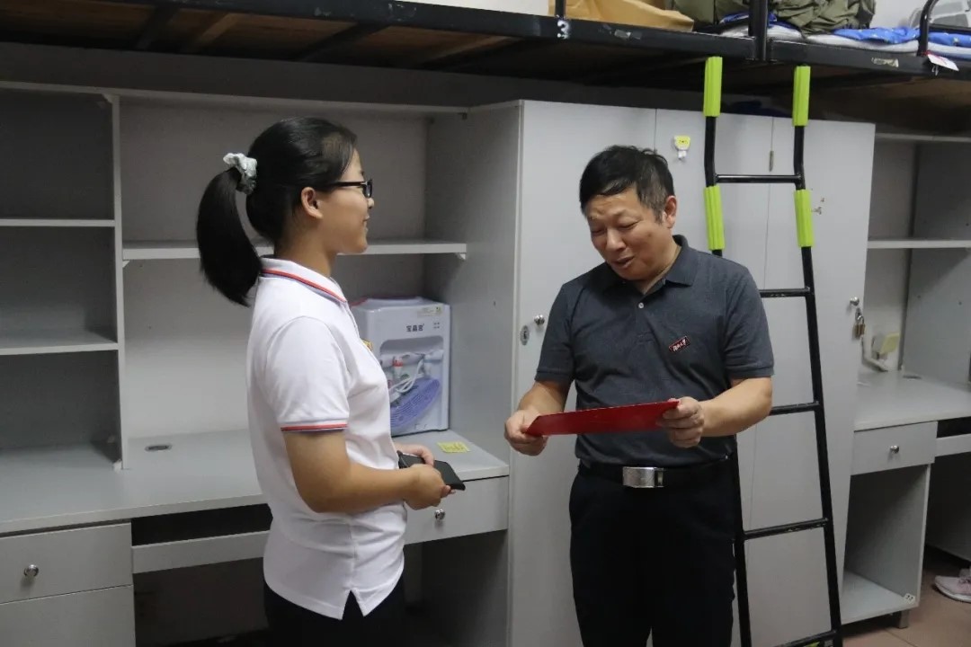 随后,胡建国书记一行又前往其他寝室看望,并在寝室中与员工亲切地聊家常。从金秋九月的凉爽天气聊到他们即将面对的新生军训,在轻松愉快的聊天氛围里消解了新生初入校园的紧张和无措。