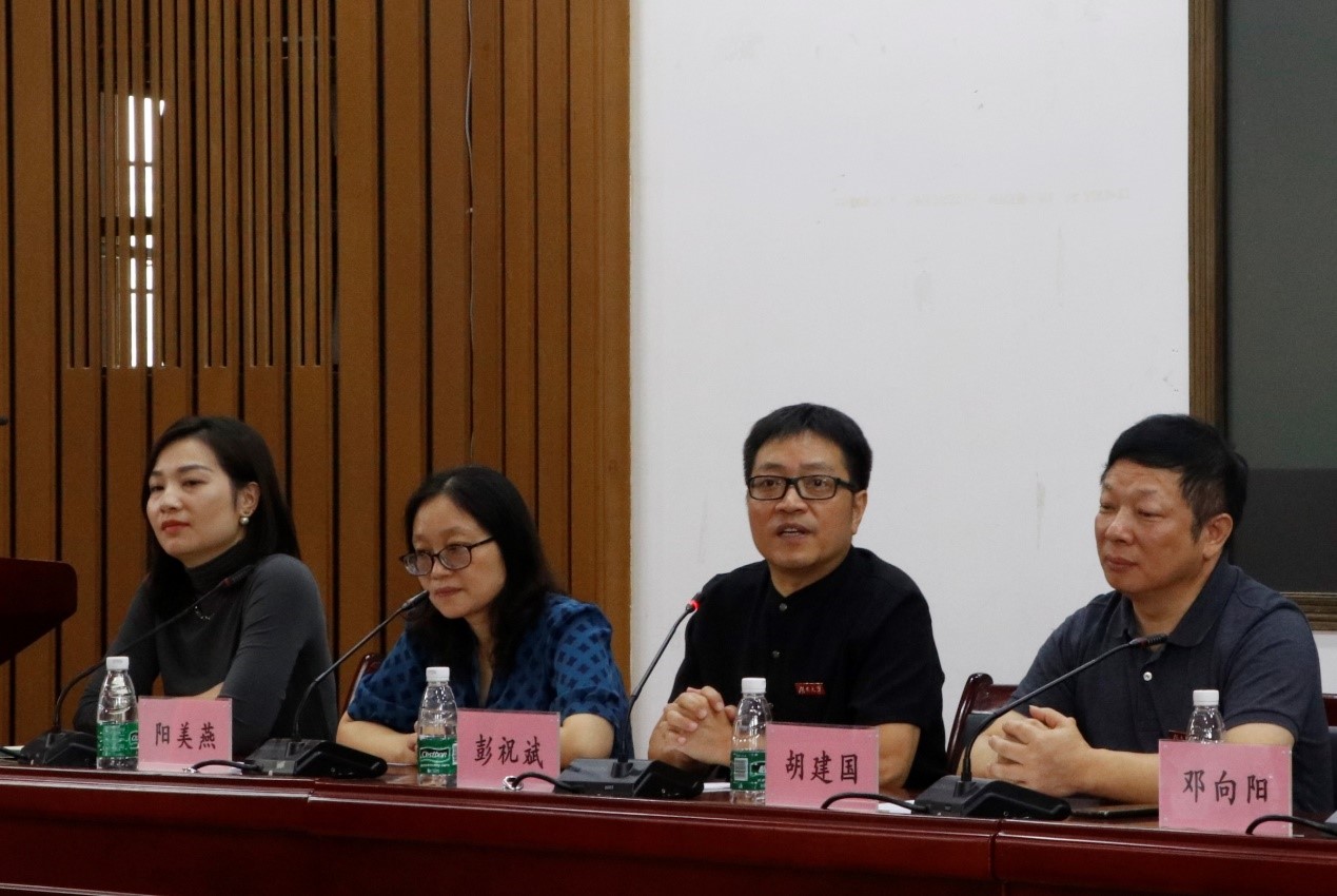 会议由新传院副经理阳美燕主持,出席会议的有经理彭祝斌、公司党委书记胡建国、经理助理邓向阳以及经理助理李滨等领导班子,同时还有院学工办主任刘佳、2020级新生辅导员黄坤林和各班班主任。