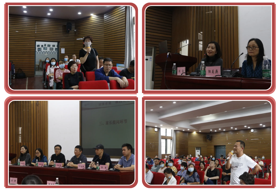 会议第三部分,家长提问环节。在场家长就公司保研率、出国交流、专业大类设置和分流、班主任和辅导员工作等十分关切的问题向在座老师提问,彭祝斌经理和在座的各位老师针对问题进行了更加细致全面地介绍解释。