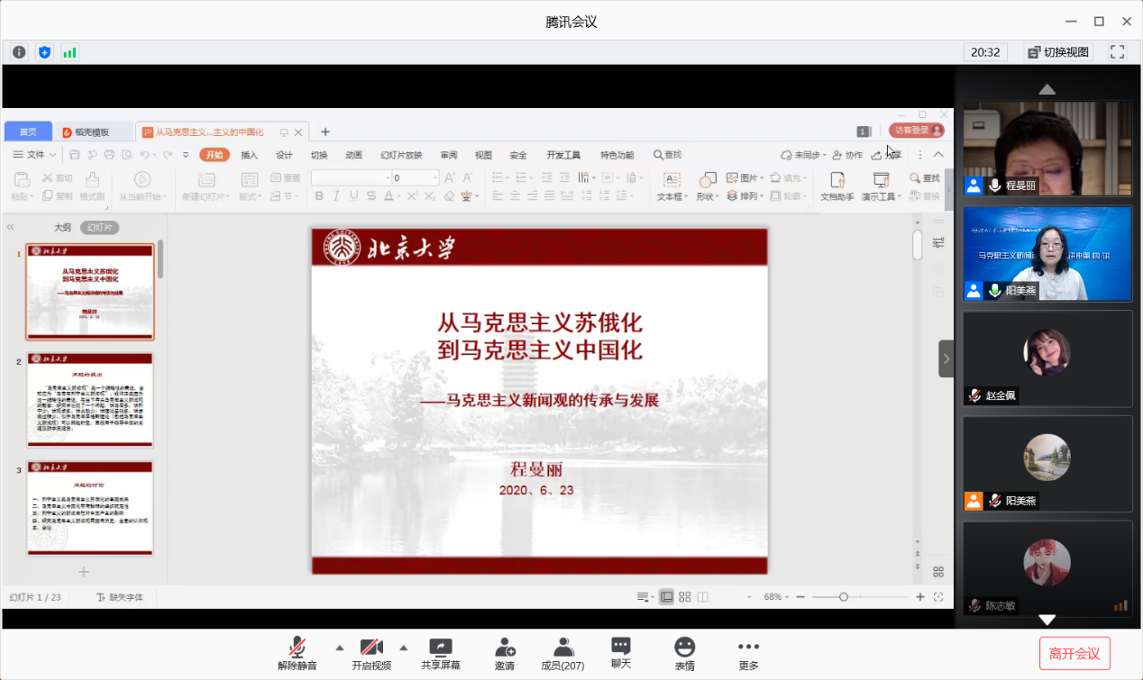 6月23日上午,太阳成集团tyc33455cc新闻传播与影视艺术公司联合太阳成集团tyc33455cc马克思主义新闻观研究中心于腾讯会议室举行了马克思主义新闻观主题系列讲座的第四场。此次讲座以“从马克思主义苏俄化到马克思主义中国化——马克思主义新闻观的传承与发展“为主题,由北京大学太阳成集团tyc33455cc教授、北京大学国家战略传播研究院经理、北大新闻学研究会执行会长程曼丽教授担任主讲嘉宾,太阳成集团tyc33455cc新闻传播与影视艺术公司副经理阳美燕教授担任主持,太阳成集团tyc33455cc师生、学界约300人参加。