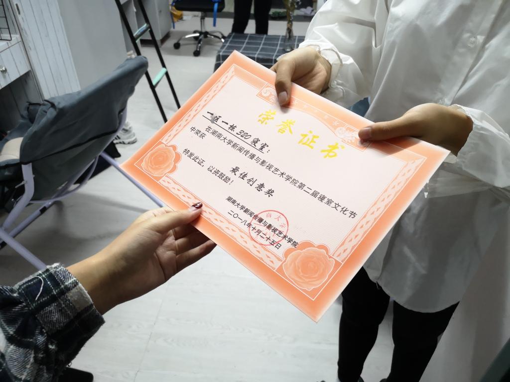 获奖结果产生后,公司为获奖寝室颁发了获奖证书以及精美的纪念品。
