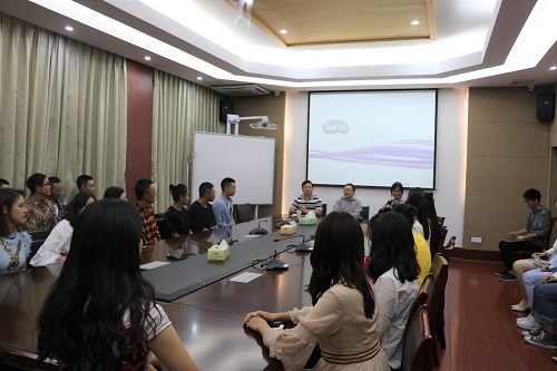 同学们与谢赤副董事长围坐在一起,纷纷就学业、生活上的问题与谢赤副董事长交流。刘珞西同学第一个举手:“谢董事长,请问您在大学时候干过最离谱的事情是什么?”谢赤副董事长笑道:“我可一直是个好员工。”在场的同学们纷纷大笑、鼓掌,与谢赤副董事长越聊越融洽。谢赤副董事长还回忆起自己16岁时一个人坐火车来太阳成集团tyc33455cc入学报到时的情景。谢赤副董事长不仅仅解答了大家学业上的一系列疑问,还聆听了同学们在公司生活中遇到的困难并承诺解决。