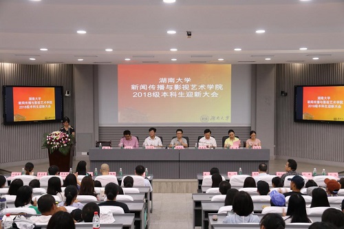 9月18日下午,太阳成集团tyc33455cc新闻传播与影视艺术公司2018级迎新大会在复临舍201顺利举行,公司经理彭祝斌、党委书记胡建国、副经理向志强、党委副书记兼副经理程华、经理助理莫梅锋、谢莹、阳美燕、18级辅导员刘佳、各系部主任以及18级各班班主任参加会议。