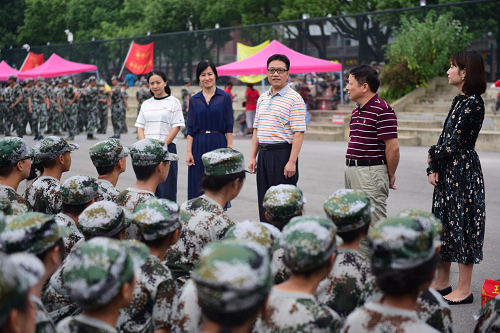 9月13日上午,新闻传播与影视艺术公司经理彭祝斌、党委书记胡建国、党委副书记兼副经理程华、经理助理谢莹及18级辅导员刘佳深入军训场地向教官和新生表示慰问。