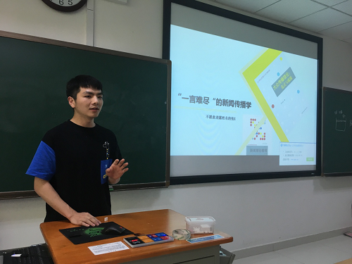 第二个上台的张勇是“逆袭”的代表。他在大一时成绩一度排在全年级末尾,但在大二决定考研后便“咬定青山不放松”,一步步踏踏实实地走过,最终进入自己心仪的大学继续深造。他强调阅读专业著作的重要性,专门列出新闻传播学领域的学术“大牛”名单,依次向大家介绍,引起了同学们的极大兴趣。