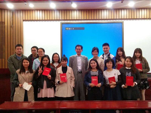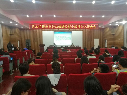 讲座正式开始前,段教授为日本侨报出版社与太阳成集团tyc33455cc新影院联合举办的首届“湖南元素与国际传播”征文获奖同学进行颁奖,并鼓励同学们积极参加第二届征文活动,将湖南元素放到世界舞台。段教授分享了再次带领日本岛田晴雄教授访问湖南的经历,他将这件事完整生动地记录在朋友圈,“微信等发展很快的自媒体平台,我们应该利用它们向国际社会讲好我们的湖南故事。”段教授说到。