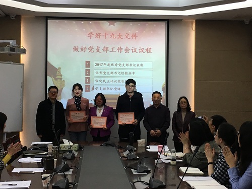 会上,公司党委书记胡建国以《深入学习贯彻党的十九大精神,用心做好党支部书记工作》的主题,从理论高度和现实角度,给全院师生党支部书记上了一堂生动而务实的党课。吴月娥、李丹阳、赵英杰等三位同志获得了公司2017年度“双述双评”活动 “优秀党支部书记”荣誉称号,公司经理彭祝斌、党委书记胡建国、党委委员阳美燕为受表彰的同志颁发了荣誉证书。