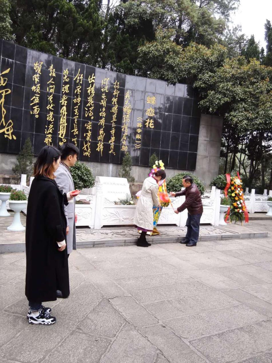 上午九时,师生党员们怀着无比崇敬的心情来到烈士陵园,向杨开慧烈士敬献花篮。