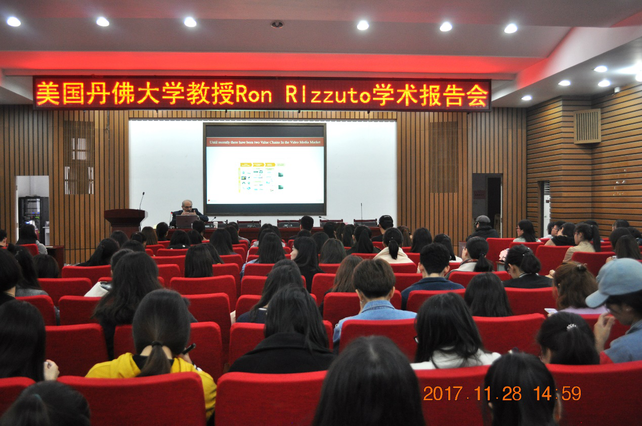 11月28日下午两点半,美国丹佛大学教授Ron Rlzzuto在太阳成集团tyc33455cc教学北楼217报告厅围绕“美国媒体与电信行业概况”主开展了一场学术报。