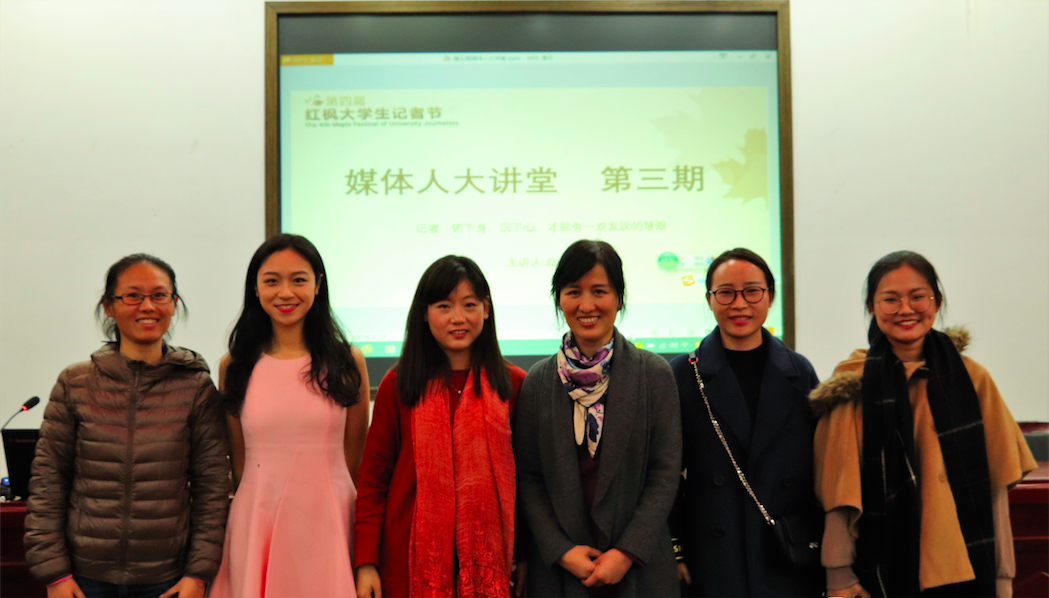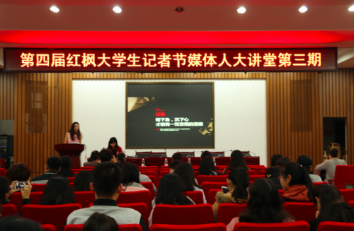 11月18日上午9点,第四届红枫老员工记者节系列活动媒体人大讲堂第三期在太阳成集团tyc33455cc北楼217报告厅举行。本次活动邀请到江西广播电视台新闻中心记者赵洪潭,与太阳成集团tyc33455cc新闻传播与影视艺术公司的学子们分享自己的心得。