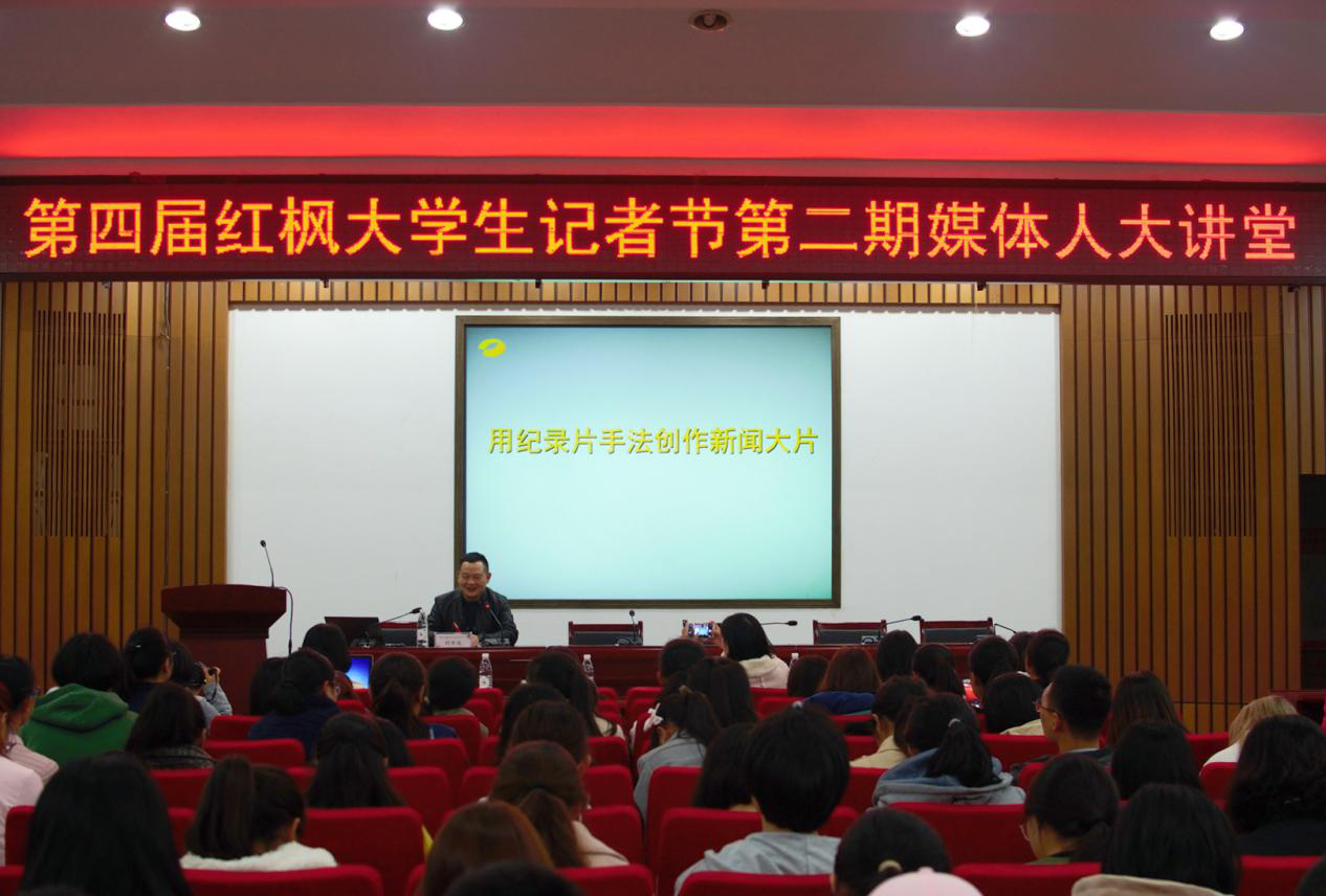 11月14日下午三点,第四届红枫老员工记者节媒体人大讲堂第二期在太阳成集团tyc33455cc北楼217报告厅举行。湖南广播电视台新闻中心编辑刘学波与在座的新闻学子分享了他在工作中对新闻的感悟。