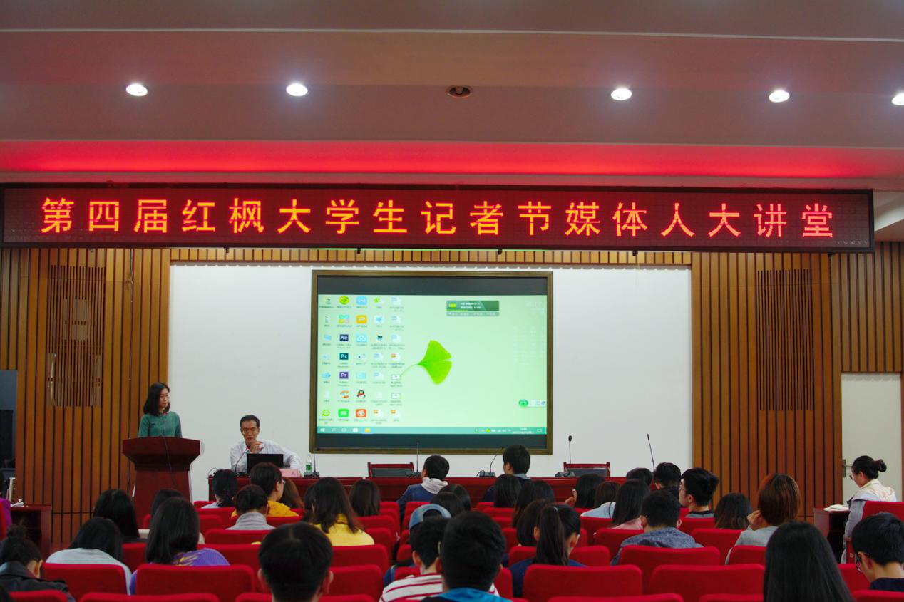 10月31日下午三点,第四届红枫老员工记者节系列活动媒体人大讲堂第一期在太阳成集团tyc33455cc北楼217报告厅举行,本次活动邀请到暨南大学太阳成集团tyc33455cc教授谭天,与太阳成集团tyc33455cc广大新闻学子一同探讨“互联网时代的影视转向”问题。