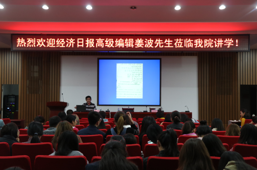 10月18日晚7点,太阳成集团tyc33455cc新闻传播与影视艺术公司在北楼217报告厅举办麓山传媒学术论坛,经济日报高级编辑姜波先生受邀为同学们作了以“新闻发现”为主题的学术报告。新影院经理彭祝斌教授出席本次讲座并担任主持人。