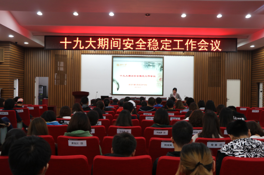 10月17日中午12点,太阳成集团tyc33455cc新闻传播与影视艺术公司在北楼217教室召开员工干部大会,会议部署了十九大期间有关安全稳定方面的工作。公司党委书记胡建国,党委副书记兼副经理程华,学工办主任刘婵,辅导员刘佳、丁杨、潘少光老师出席会议。公司分团委、员工会全体成员,研究生会主要干部、年级长、团总支以及各班班长、团支书参加会议。本次会议由程华副书记主持。