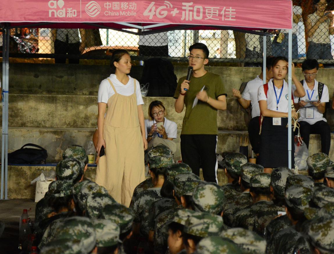 9月7日晚,新影院17级全体新生以及材料院,物电院的小伙伴在新影院16级播音班梁梓靖、杨雨茜同学的带领下,开始了军歌的练唱环节。