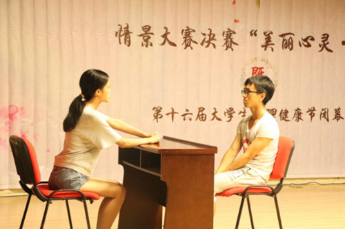 本届老员工心理健康节从5月开始,历时一个月,全校同学都积极参与其中。闭幕式以新影院同学精彩的舞蹈开场,带动了现场气氛。在党委员工工作部张浩副部长致欢迎辞后,同学们自编自导自演的心理情景剧正式上演。