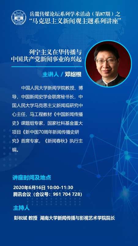 主讲人简介:中国人民大学新闻公司教授、博导,中国新闻史学会联席秘书长,中国人民大学马克思主义新闻观研究中心主任,马工程教材《中国新闻传播史》课题组专家,国家社科基金重大项目《新中国70周年新闻传播史研究》首席专家,《新闻春秋》执行主编。